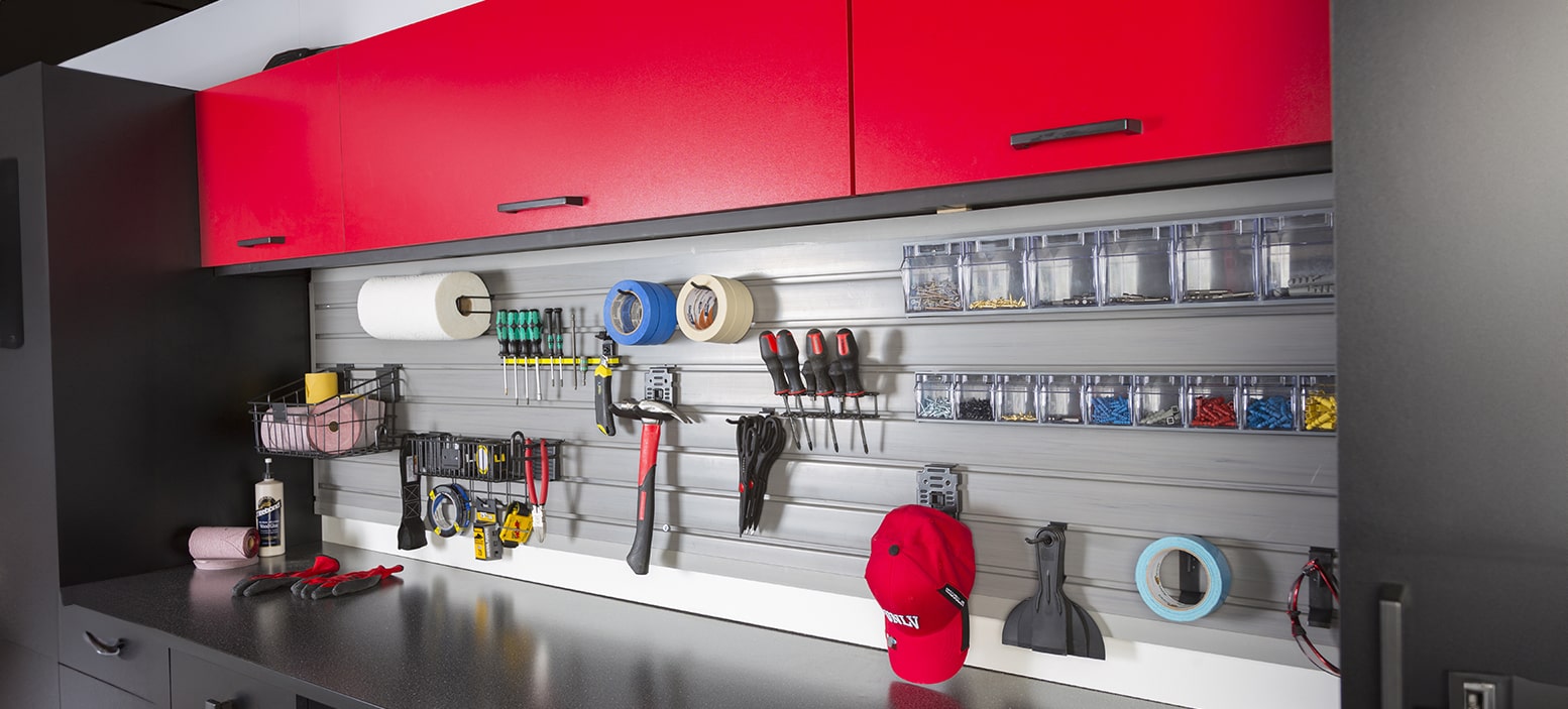 HandiWALL Slatwall Panels upgrades sections or entire garage walls with paneling that converts previous surfaces with the ability to hang storage from them. Remove tools and equipment from spots that are difficult to access and hang on the wall for convenient reach.