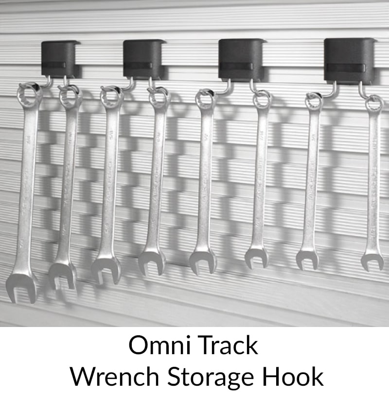 Omni Track features a modular track based design for highly customizable storage solutions. Easily install wall mounted tracks where it makes sense to you; maybe over a work table for tool storage, a spot where you need to hang bikes, or garden tools close to the exit for easy access to the flowerbed.