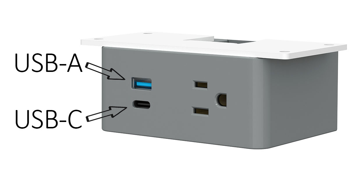 USB-C is not yet ubiquitous since emerging technologies can take decades to reach that point. You’ll often find a USB-C port paired with a traditional USB-A port to ensure early adopters and the old guard can still charge their devices on the go without the frustration of not having the correct cable. We take this same approach at HarborCitySupply.com where you’ll find our Dekko & ECA power/data modules with USB charging capabilities now incorporate one USB-C and one USB-A to make sure all bases are covered for charging any device. Our ECA models that incorporate a telecom plate will give you the option to have up to 3 USB-C connectors in a single telecom plate. These connectors can be connected to a power source to allow for device charging or connected to a computer or external hard drive for data transfer. Reach out to any of our specialists by phone, e-mail, or chat with your questions about USB-C and our products that will work best with your application.