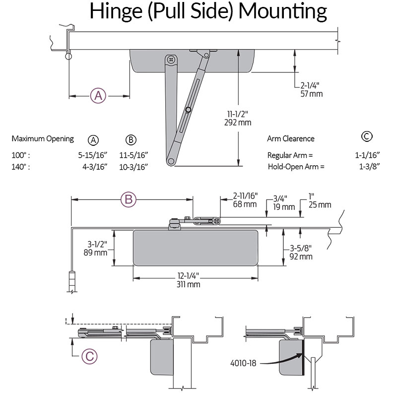 LCN 4010 Series Hinge (Pull) Side Mounting Door Closer meets ADA code for compliance in any school, restaurant, or commercial entrance. Enjoy durable cast iron construction for safety and security in any high-traffic entryway.